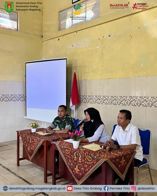 Pada kesempatan ini juga Kepala Desa Tirto Lilik Harlina memberikan sambutan yang dihadir para penerima manfaat yang terdiri dari para lansia dan penyandang disabilitas, Babinsa setiap desa yang berada di Kecamatan Grabag, perangkat desa pendamping penerima manfaat dari setiap desa yang berada di Kecamatan Grabag dan Unit Pelaksana Teknis Kemensos RI Sentra Antasena Kabupaten Magelang.