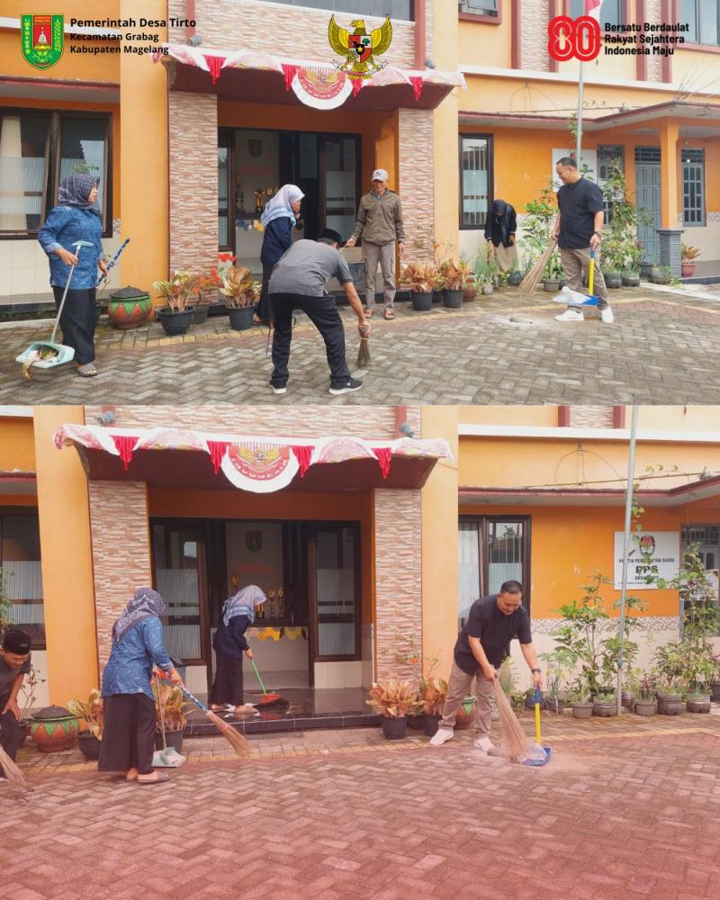 Tirto – Jumat (8/8/2025), Pemerintah Desa Tirto melaksanakan kegiatan bersih-bersih lingkungan Kantor Balai Desa Tirto. Kegiatan ini merupakan bagian dari inovasi daerah Kecamatan Grabag “Grabestie”, sekaligus menyambut HUT ke-80 Kemerdekaan Republik Indonesia.