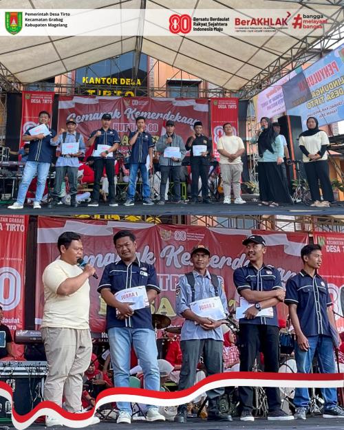 Penyerahan hadiah dilakukan langsung oleh Kepala Desa Tirto, Lilik Harlina. Dalam sambutannya, beliau menyampaikan terima kasih atas partisipasi seluruh warga dan kelembagaan desa yang telah mendukung rangkaian kegiatan. Beliau juga berharap semangat persatuan dan gotong royong yang ditunjukkan dapat terus terjaga dalam kehidupan sehari-hari.