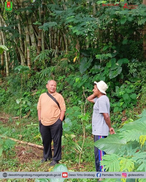 Kepala Desa Tirto memberikan sambutan dalam acara Verifikasi Lapangan tersebut yang di hadiri oleh Perangkat Desa Tirto, petani Milenial KUB Andong Tretes, perwakilan pengurus setiap Bank Sampah Ngudi Raharjo Dusun Pasanggrahan, Bank Sampah Tirto Argo, bank sampah Kendedes dusun Pasekan, bank sampah Margo Mulyo dusun Kudusan, bank sampah Mandiri dusun Tempel, bank sampah Andong Jinawi dusun Tirto, dan Camat Grabag Sri Utari serta tim juri dari Dinas Llingkungan Hidup Kabupaten Magelang.