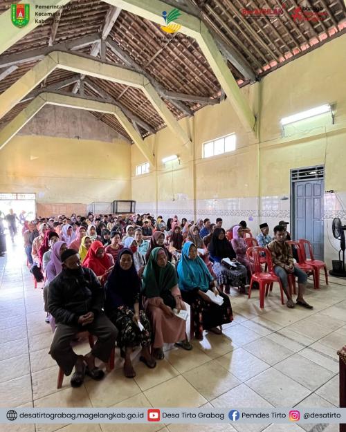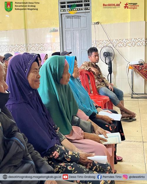 Pada kesempatan ini juga Kepala Desa Tirto Lilik Harlina memberikan sambutan yang dihadir para penerima manfaat yang terdiri dari para lansia dan penyandang disabilitas, Babinsa setiap desa yang berada di Kecamatan Grabag, perangkat desa pendamping penerima manfaat dari setiap desa yang berada di Kecamatan Grabag dan Unit Pelaksana Teknis Kemensos RI Sentra Antasena Kabupaten Magelang.