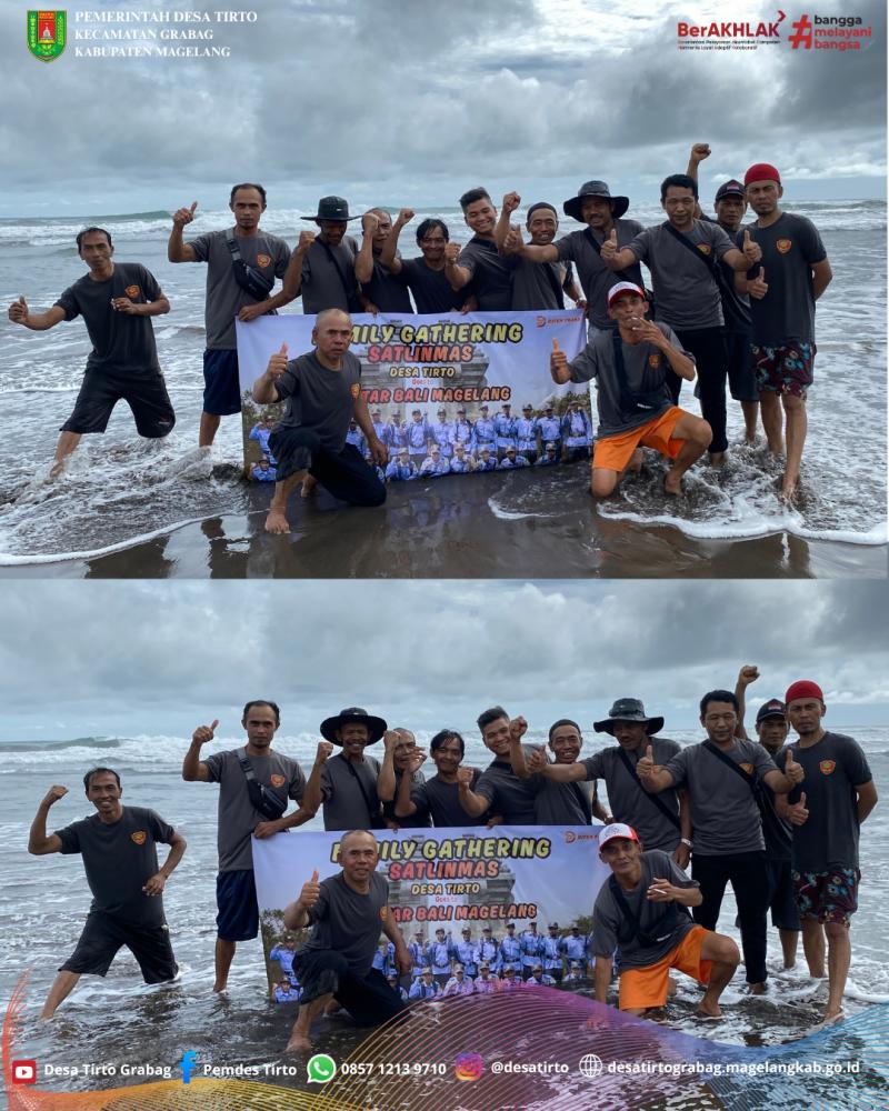 Sebagai penutup rangkaian kegiatan, Linmas Desa Tirto mengadakan family gathering di Pantai Parangtritis, Yogyakarta. Kegiatan ini menjadi momen kebersamaan dan penyegaran bagi seluruh anggota setelah menjalani pelatihan dan perjalanan spiritual yang padat. Suasana penuh kekeluargaan dan semangat kebersamaan tampak selama acara berlangsung.