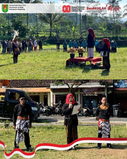 Upacara peringatan dimulai pukul 08.00 WIB di Lapangan Dusun Gentan dengan diikuti oleh berbagai unsur masyarakat, di antaranya BPD Desa Tirto, PKK Desa Tirto, Bumdes Gesang Mandiri, Koperasi Merah Putih Desa Tirto Kecamatan Grabag, LPMD, Linmas, RT/RW, Karang Taruna, serta paduan suara dari Fatayat NU Desa Tirto. Bertindak sebagai petugas upacara adalah perangkat desa Tirto, sementara pengibar bendera dipercayakan kepada tokoh pemuda Desa Tirto.